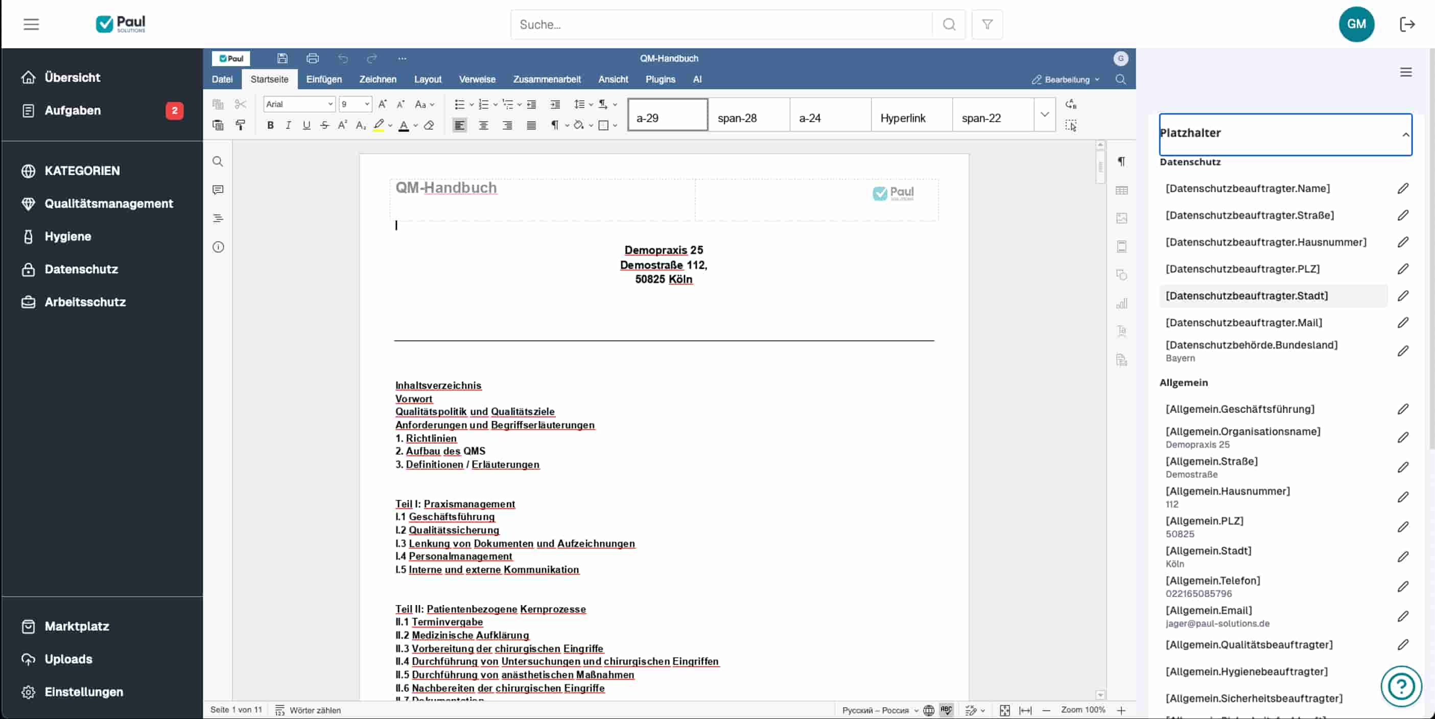 Ja, PAUL bietet fachspezifische Strukturen und Inhalte. Die Vorlagen sind so aufgebaut, dass sie die Standards für Praxen perfekt abbilden, aber gleichzeitig flexibel genug sind, damit Sie sie mit wenigen Klicks an Ihre individuellen Praxisabläufe anpassen können. Egal ob allgemeine Verwaltung oder spezielles Hygienemanagement: PAUL deckt die Bedürfnisse aller Fachrichtungen ab.